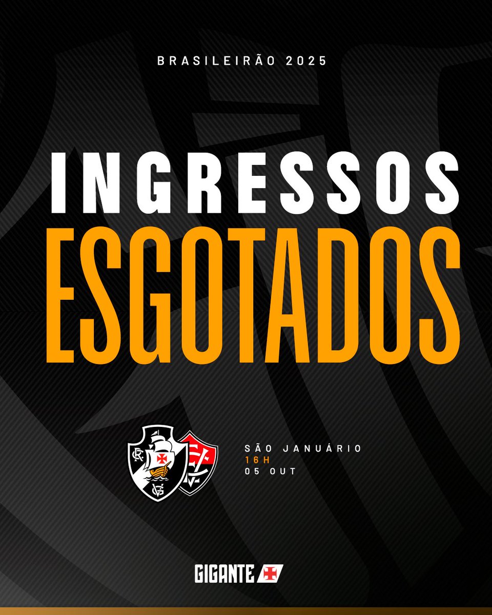INGRESSOS PARA VASCO X VITÓRIA ESTÃO ESGOTADOS