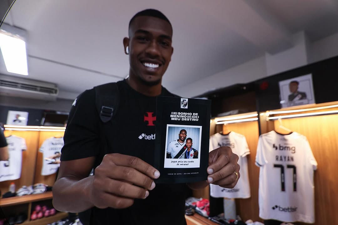 Na chegada do elenco vascaíno ao vestiário, uma ação especial: os jogadores receberam um card da sua versão adulta ao lado da versão criança 🥰 é mais uma homenagem do Vasco pelo Dia das Crianças.