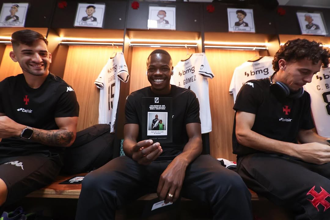 Jogadores do Vasco recebem card da sua versão adulta ao lado da versão criança; veja