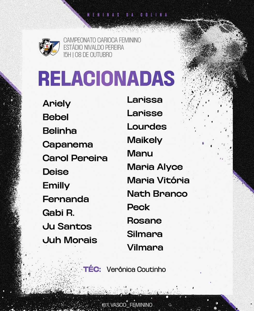 Feminino: Confira as jogadoras do Vasco relacionadas para a partida contra o Heips