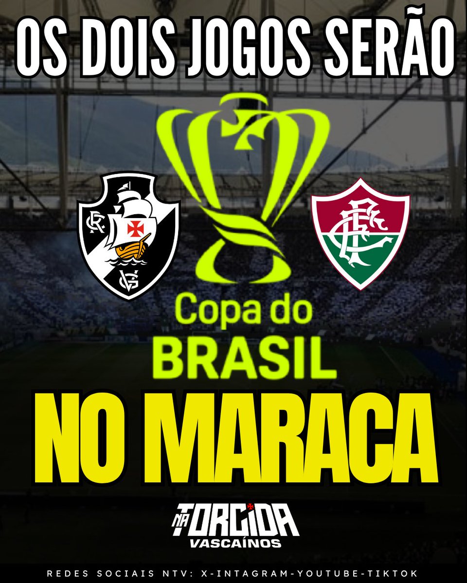 Acabamos de receber a informação de que estão confirmados os dois confrontos das semifinais da Copa do Brasil entre Vasco e Fluminense, no Maracanã.