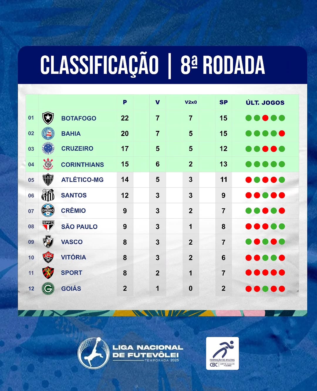 A oitava rodada mexeu com tudo. A tabela virou pressão pura, com time voando na areia, disputa pesada e cada ponto valendo guerra. A reta final promete explosão na arena.