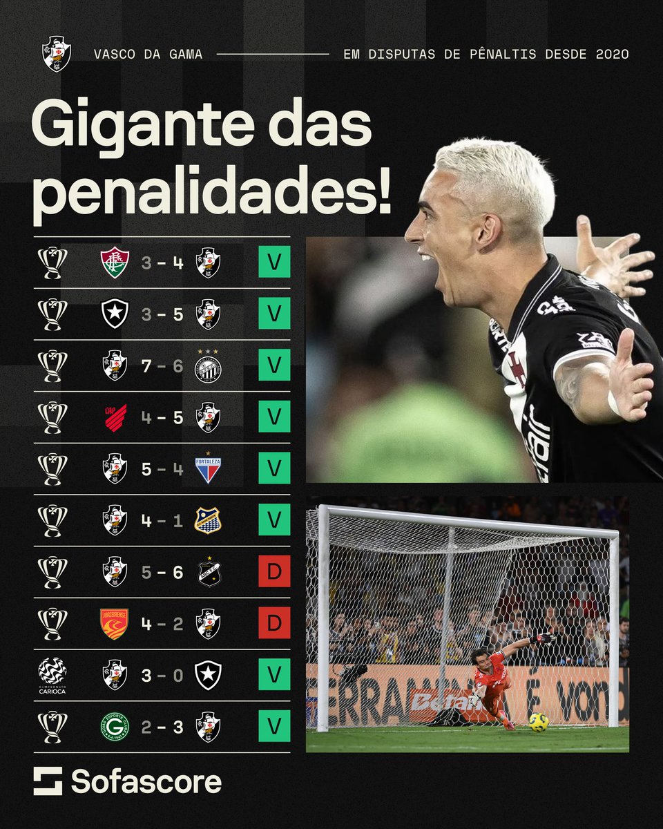 O @VascodaGama tem um grande aproveitamento em disputas de pênaltis recentes! 🎯🎯