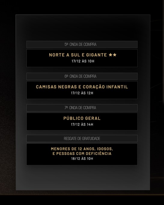Camisas Negras/Coração Infantil: 17/12 – 12h