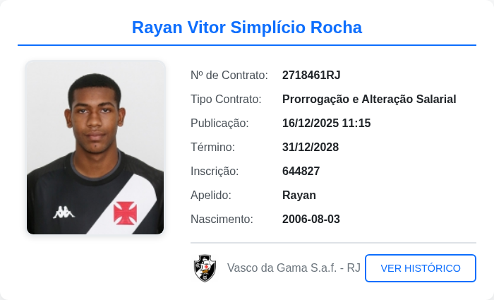 Foi publicado o novo contrato do Rayan no BID. Conforme já informado, o craque renovou até 31/12/2028.