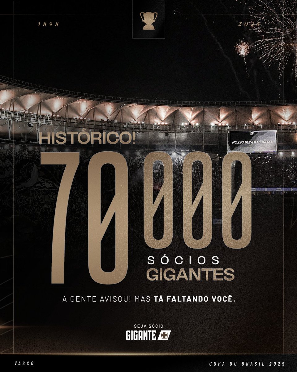 Já somos 7️⃣0️⃣.0️⃣0️⃣0️⃣ Sócios Gigantes!