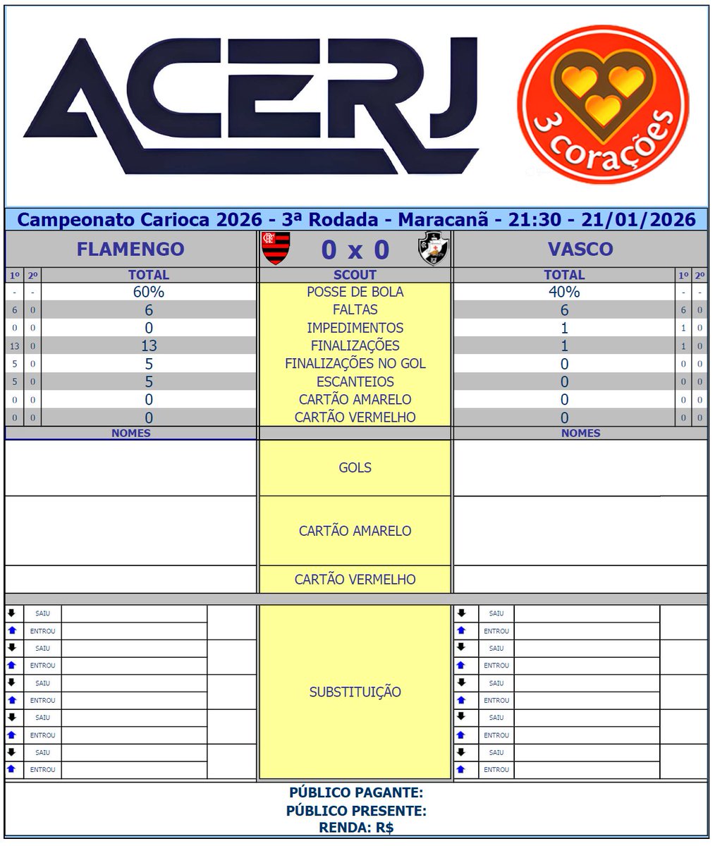 Scout do 1º Tempo de Flamengo e Vasco pela 3ª Rodada do Campeonato Carioca 2025 no Maracanã #Acerjinforma #CariocaSuperbet2026 #FLAxVAS #Flamengo #Vasco #VascodaGama @Cariocao @Flamengo @VascodaGama