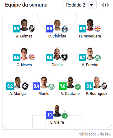 Puma Rodríguez e Andrés Goméz entram na seleção Sofascore da 2ª rodada do Brasileiro