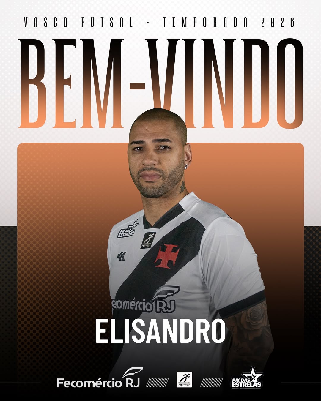 O Futsal do Vasco da Gama anuncia a chegada de Elisandro, experiente pivô, de 39 anos, canhoto e com dupla nacionalidade: Brasil e Geórgia.