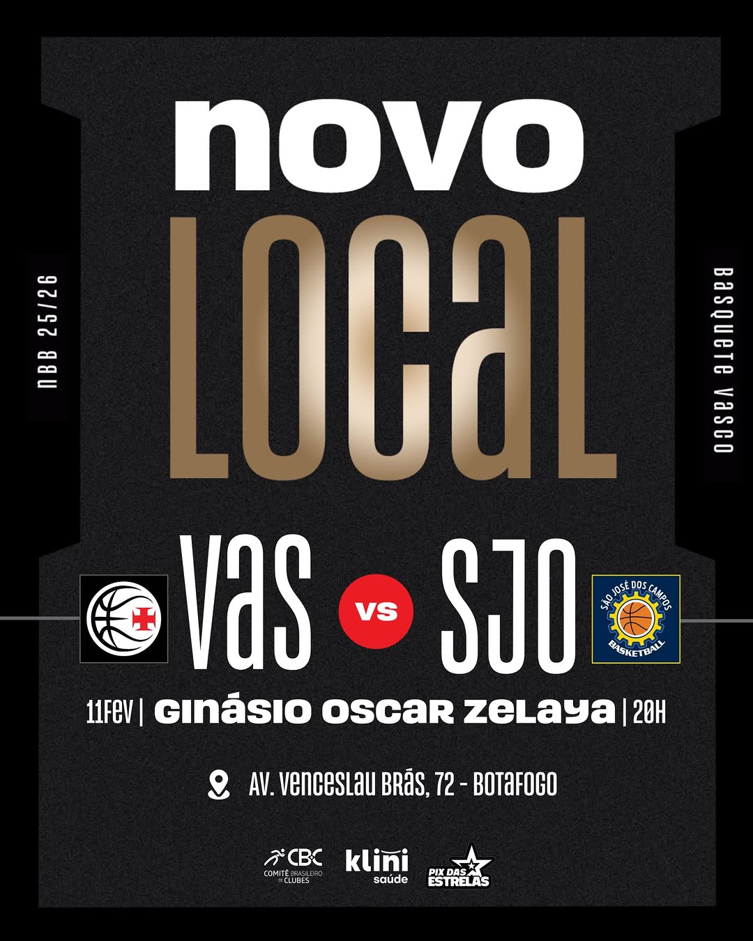 Basquete: Vasco x São José, nesta 4ª-feira, às 20h, pelo NBB, será no ginásio do Botafogo