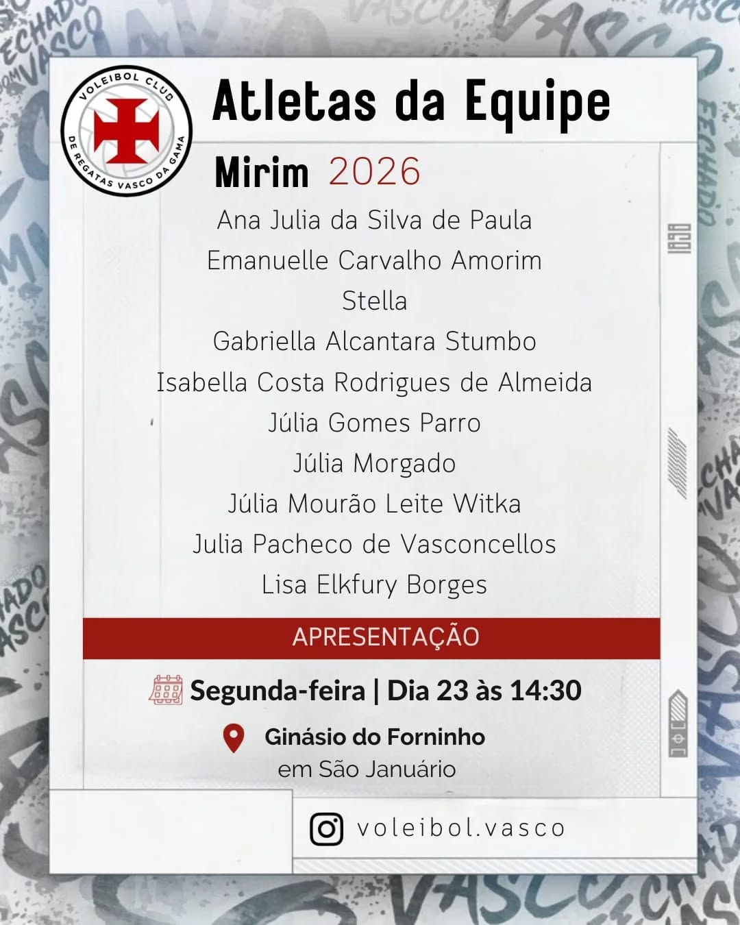Fonte: Instagram Voleibol Vasco da Gama