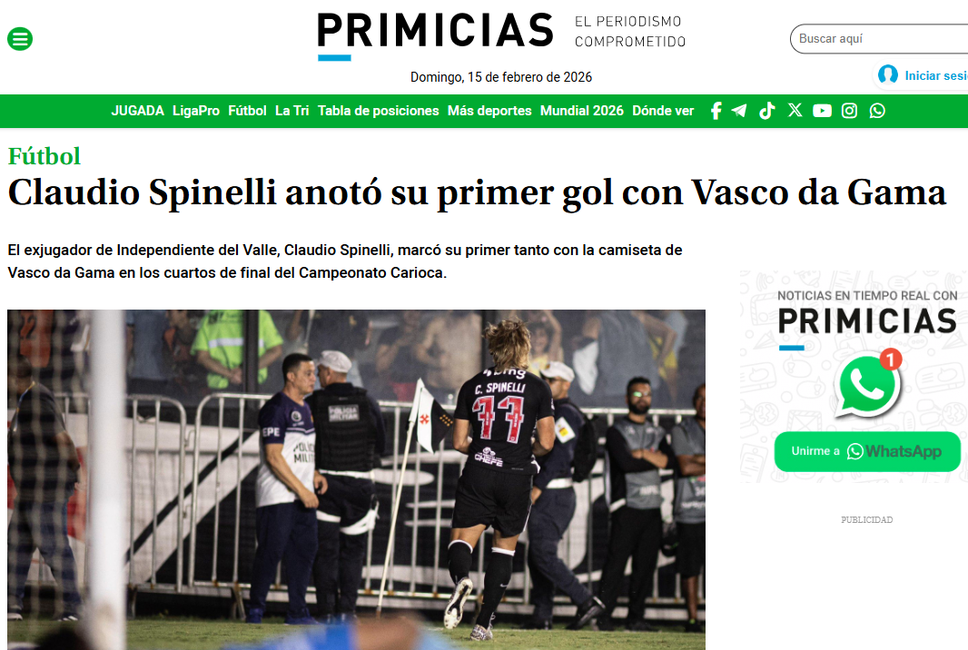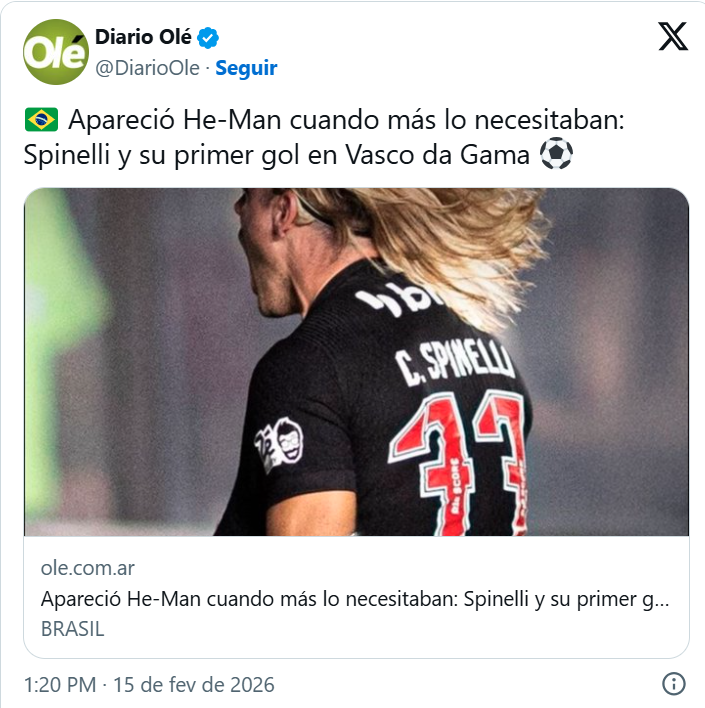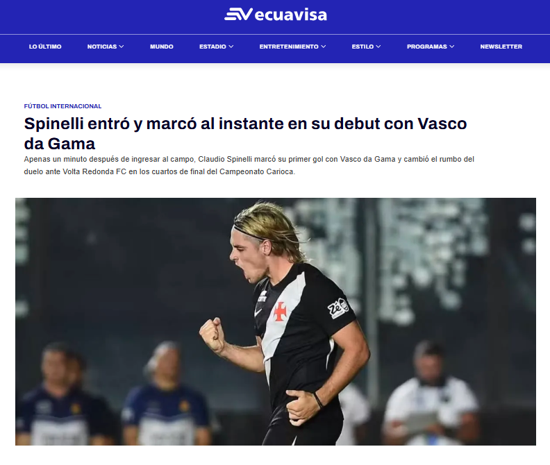 Imprensa sul-americana repercute primeiro gol de Spinelli pelo Vasco