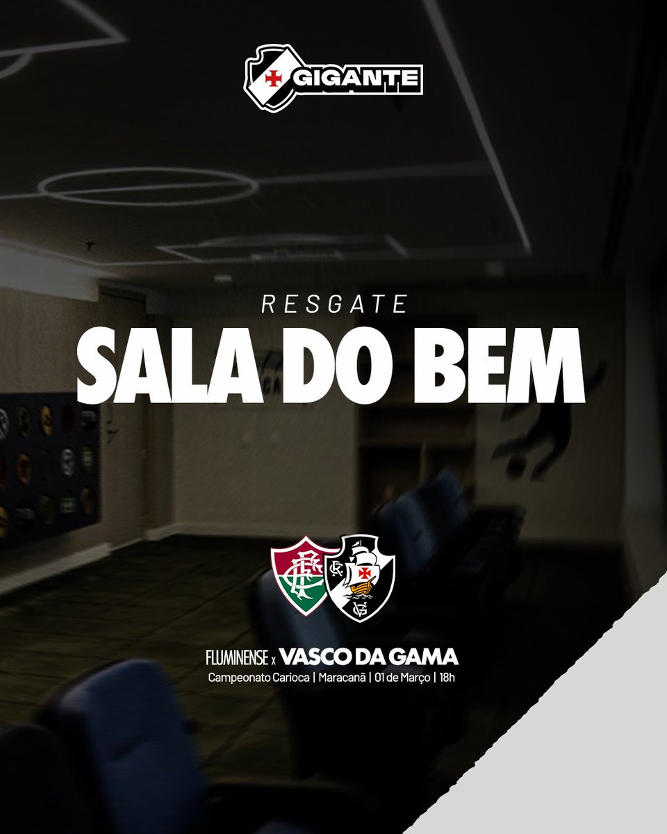 O resgate para a SALA DO BEM da partida entre Fluminense x VASCO DA GAMA será realizado HOJE (26/02), a partir das 14h.