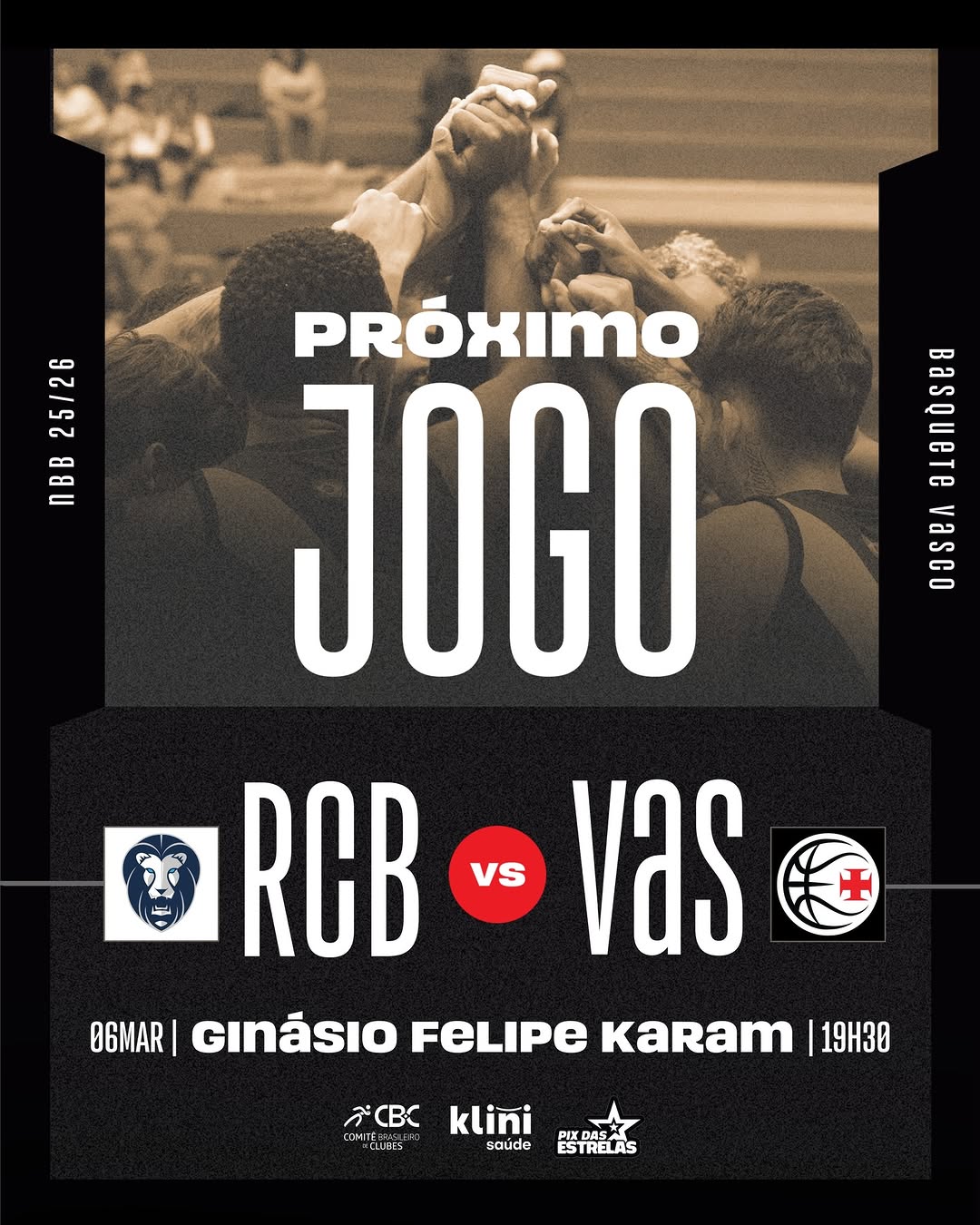 AMANHÃ é dia! 💢🏀 O Vasco da Gama enfrenta o Rio Claro, às 19h30, no Ginásio Felipe Karam, em mais um compromisso pelo NBB CAIXA 25/26.