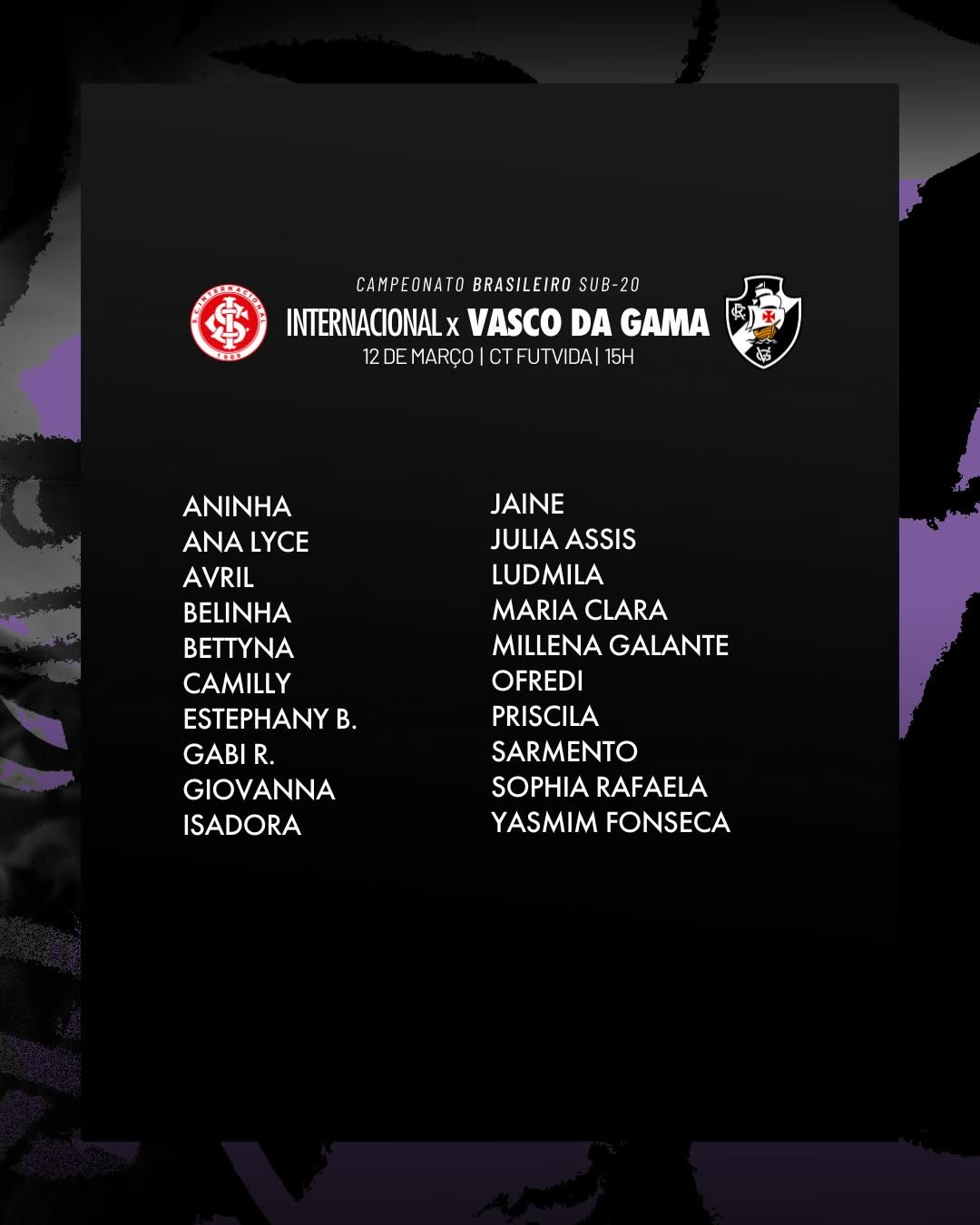📋 A lista das #CriasDaColina relacionadas para o duelo contra o Internacional, pelo Campeonato Brasileiro Sub-20! 💢