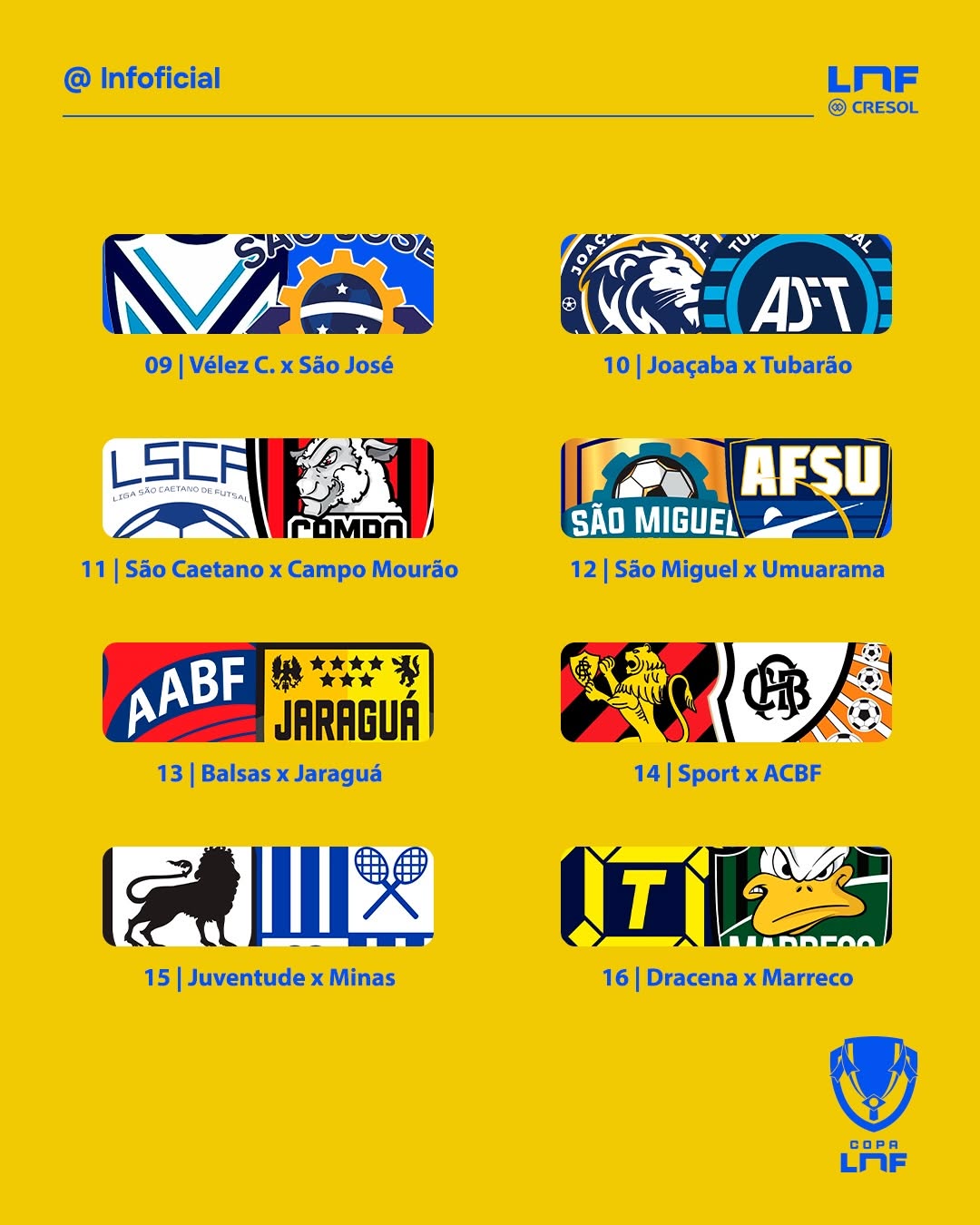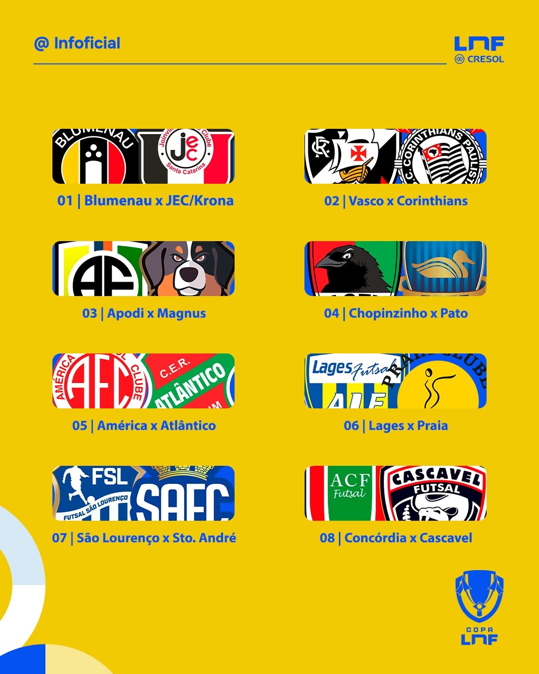 Esses serão os duelos na 1ª fase da inédita Copa LNF, com os mandos de quadra sendo das equipes da @lnfsilver.