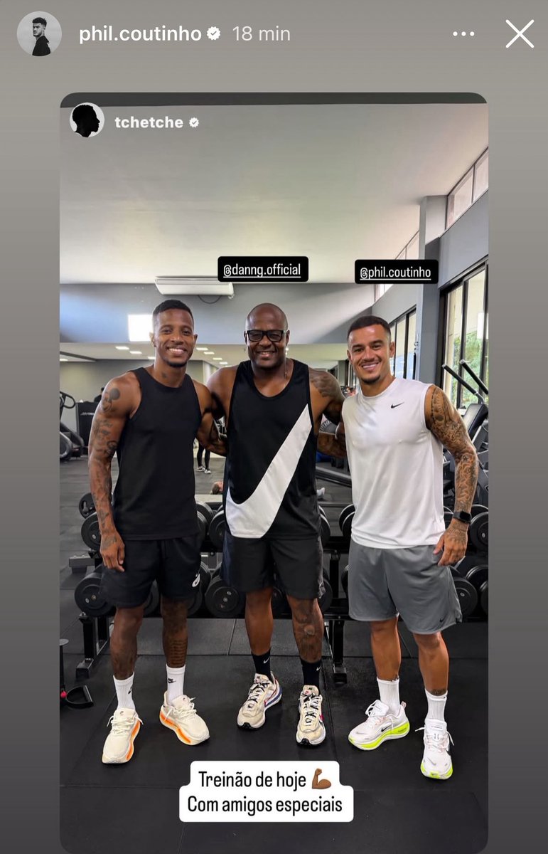 💢 Tchê Tchê postou foto treinando com Philippe Coutinho na folga.