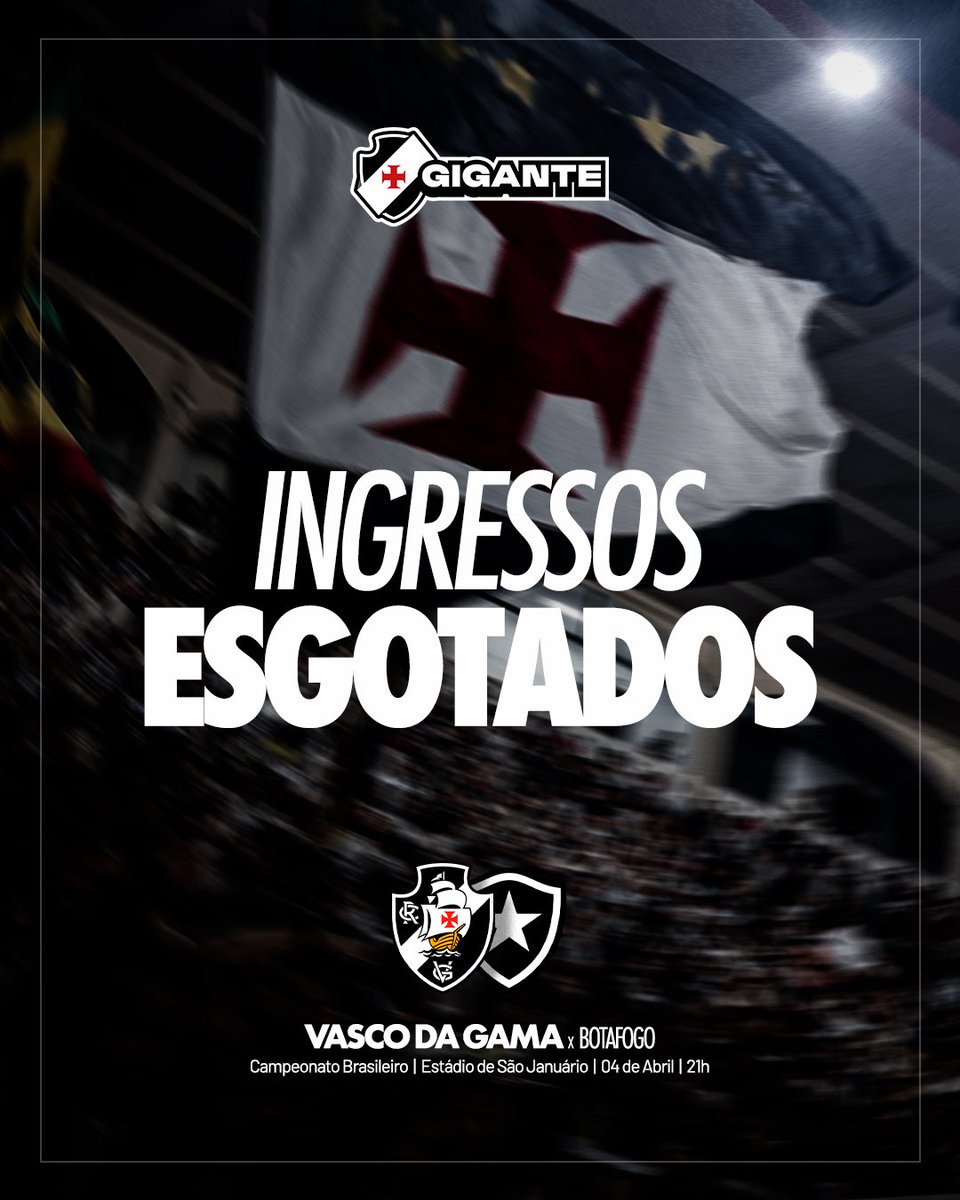 Ingressos para a torcida do Vasco esgotados. Mas o apoio ao Gigante continua de qualquer lugar!