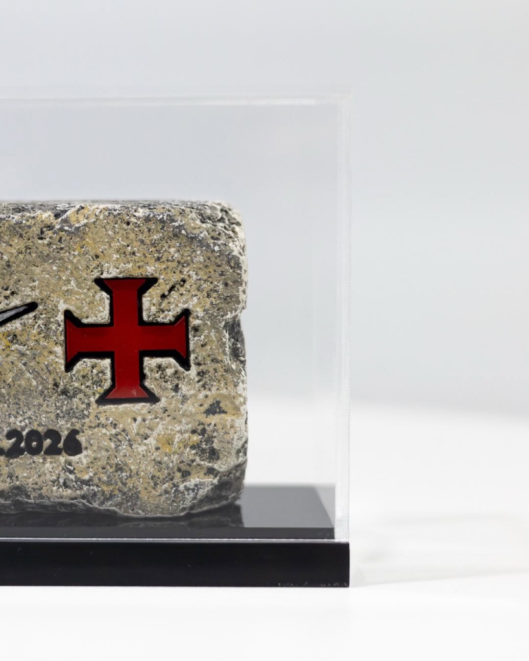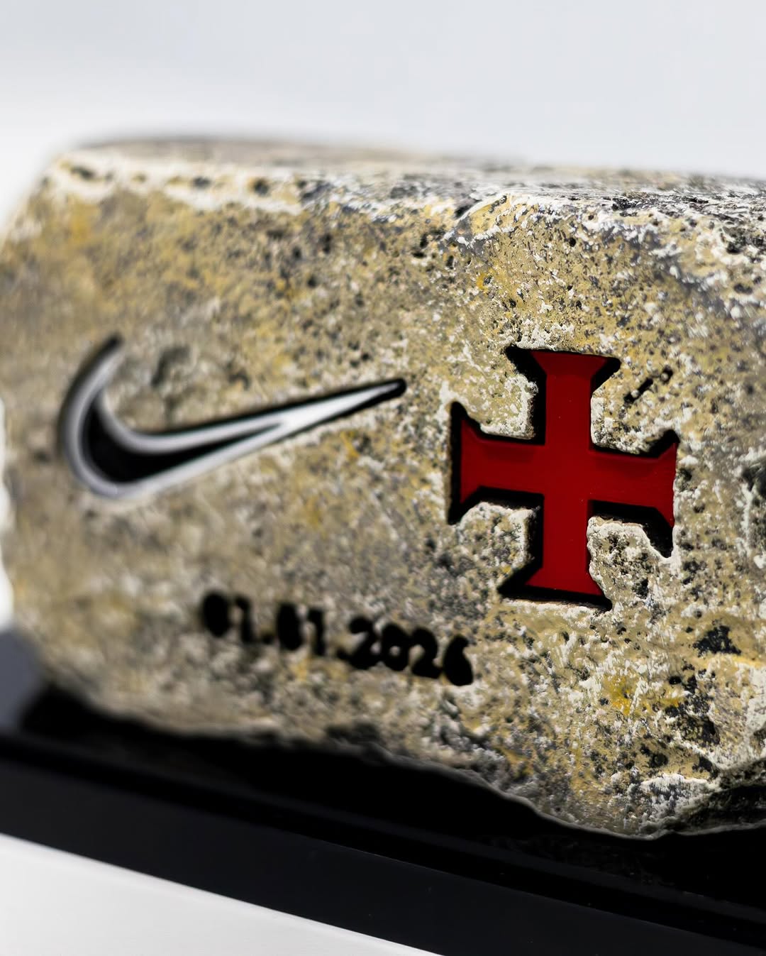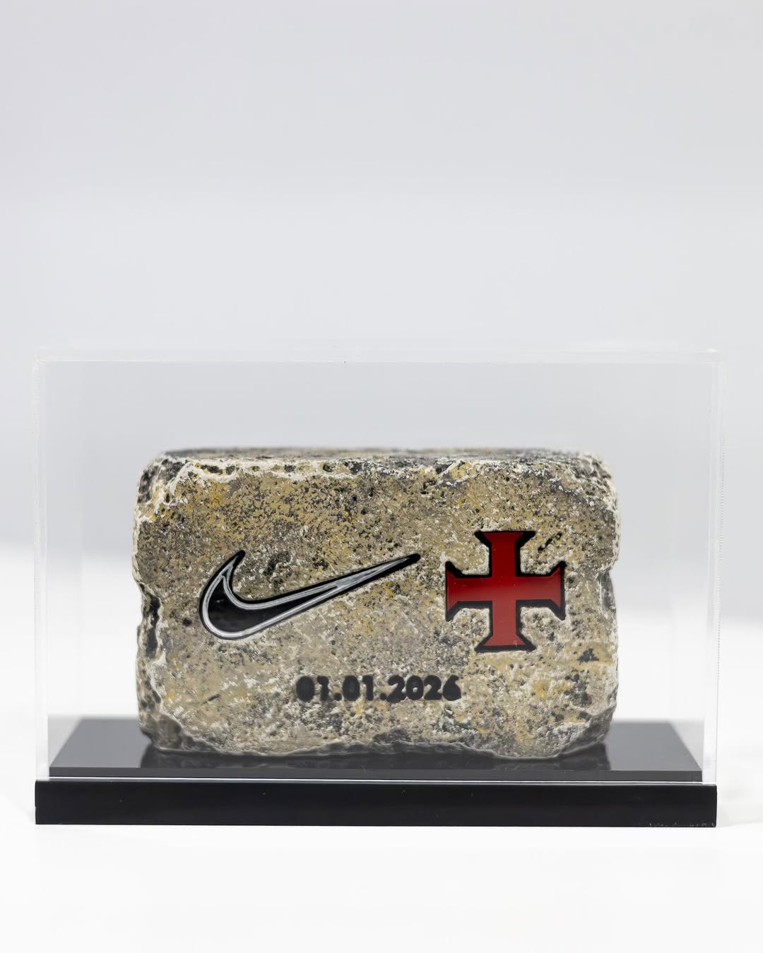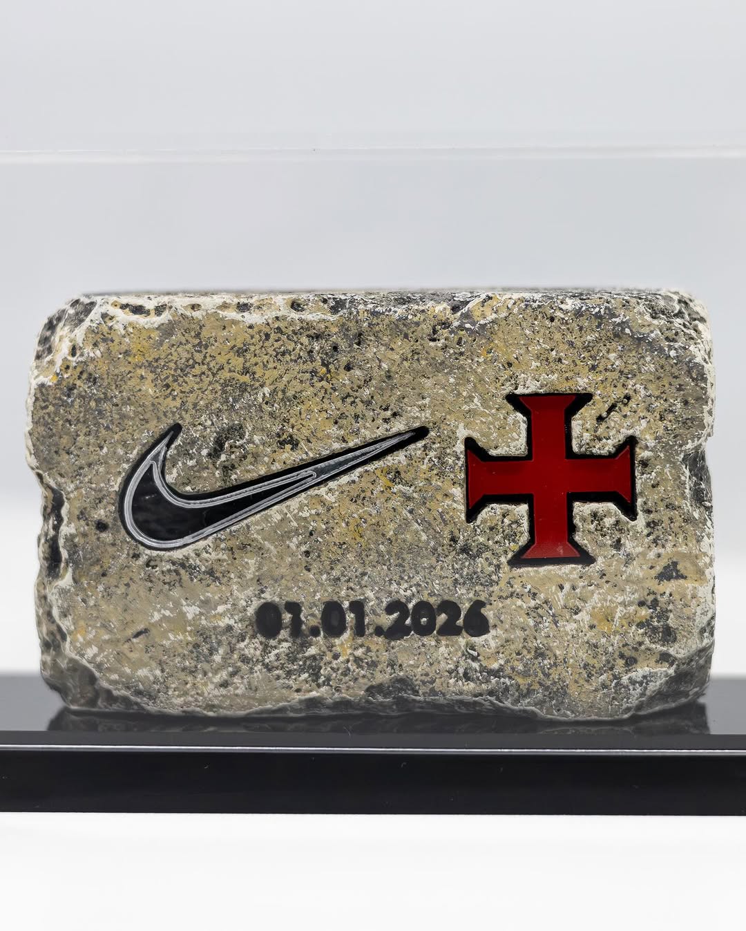 A peça foi eternizada em um acrílico e acompanhada de uma carta personalizada para cada atleta Nike do elenco. Passado e futuro, unidos em uma recordação única.