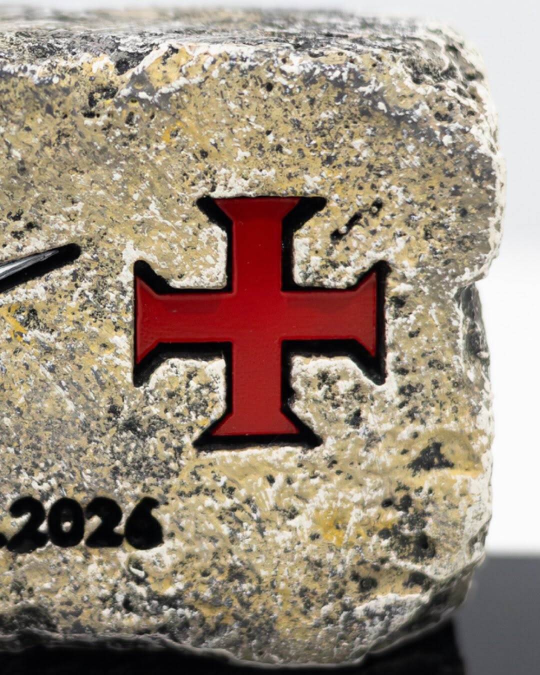 Na frente, a Cruz de Cristo ao lado do Swoosh eterniza 01.01.2026, início da jornada entre Nike e Vasco. Do outro lado, a icônica fachada de São Januário e a data do lançamento de sua pedra fundamental conectam este novo capítulo a uma das passagens mais simbólicas da história do clube.