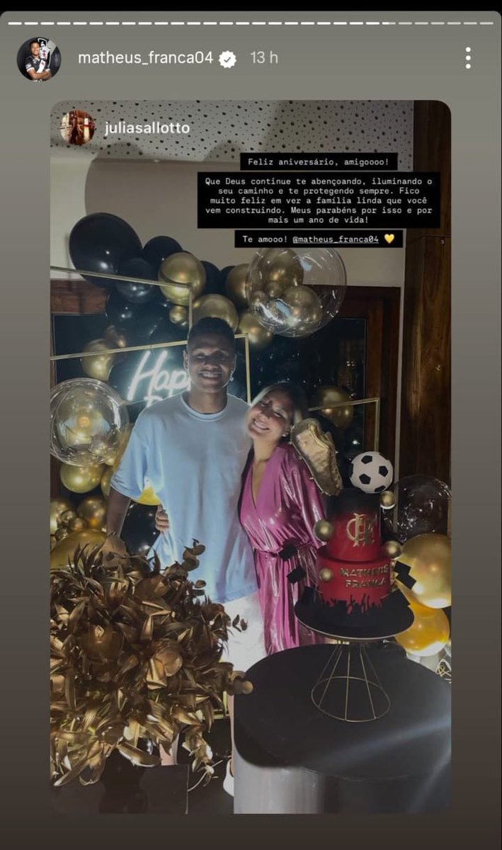 Matheus França reposta foto com bolo do Urubu e apaga após repercussão negativa torcida do Vasco