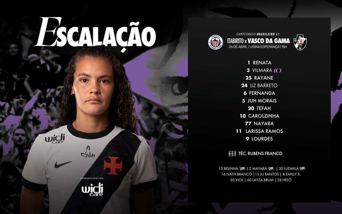 Feminino: Confira a escalação do Vasco para o jogo contra o Itabirito