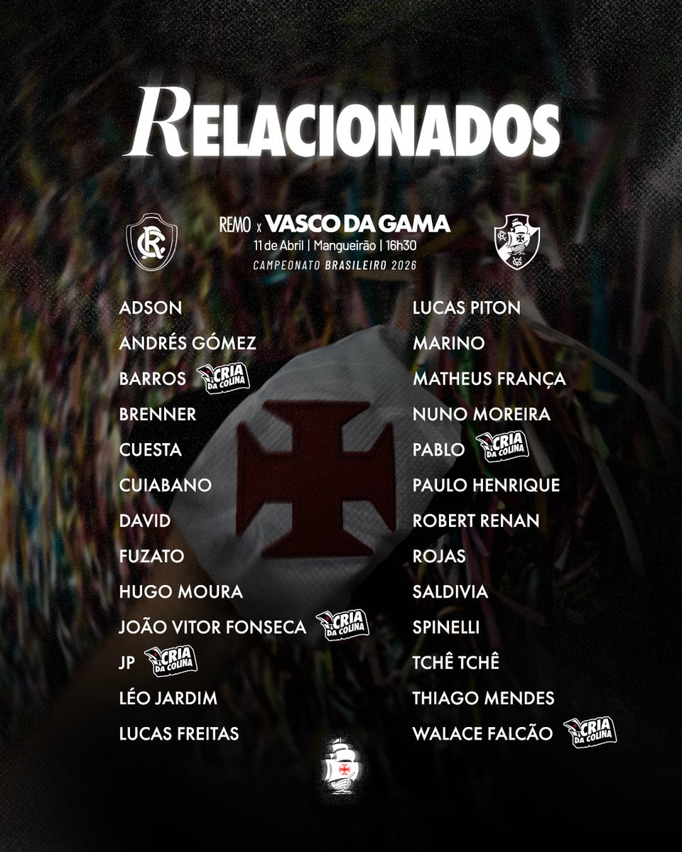 📋 Estes são os atletas do Gigante da Colina relacionados para Vasco e Remo 💢