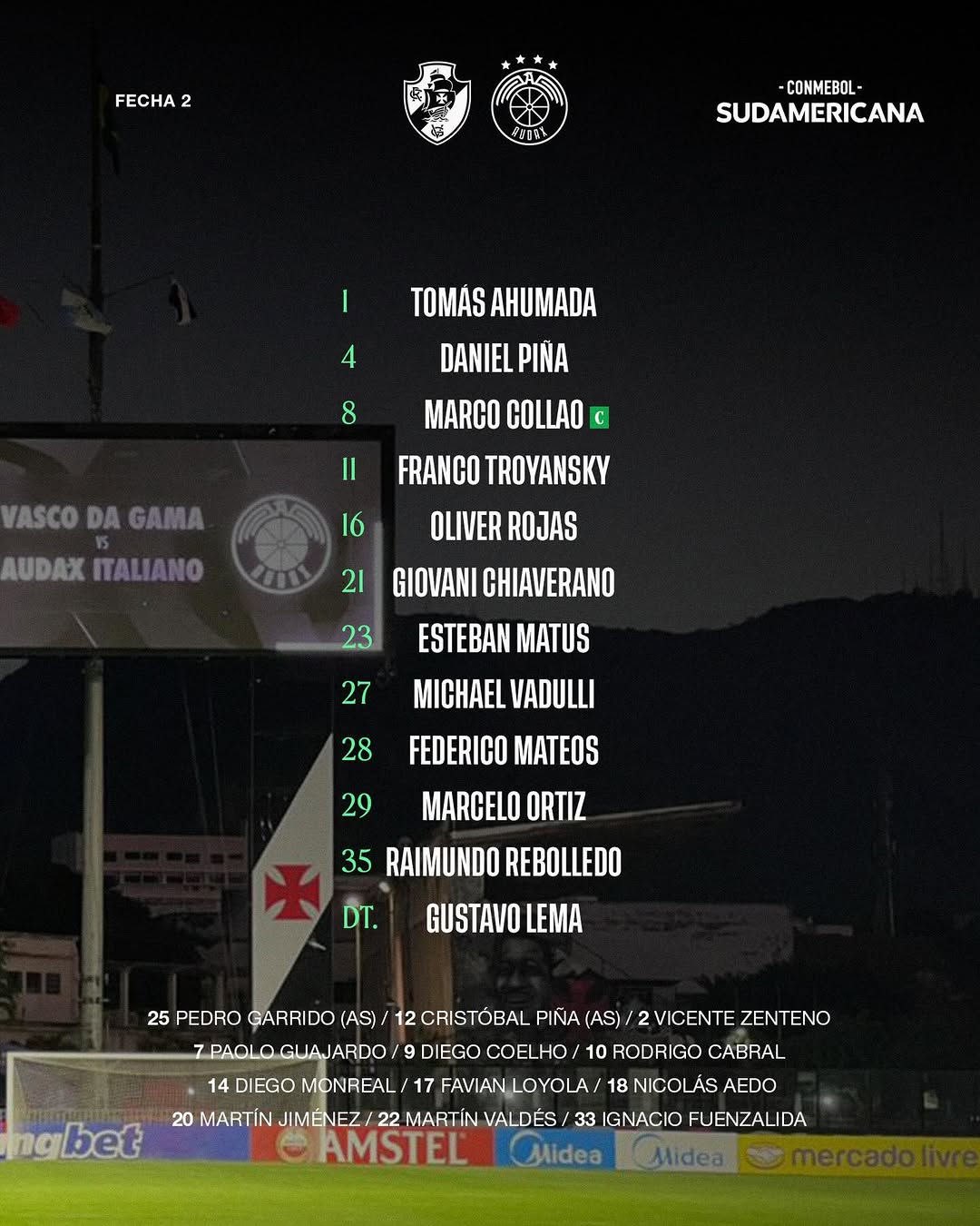 El XI de Audax Italiano para una nueva cita con la historia 🇮🇹