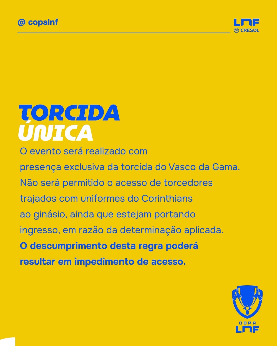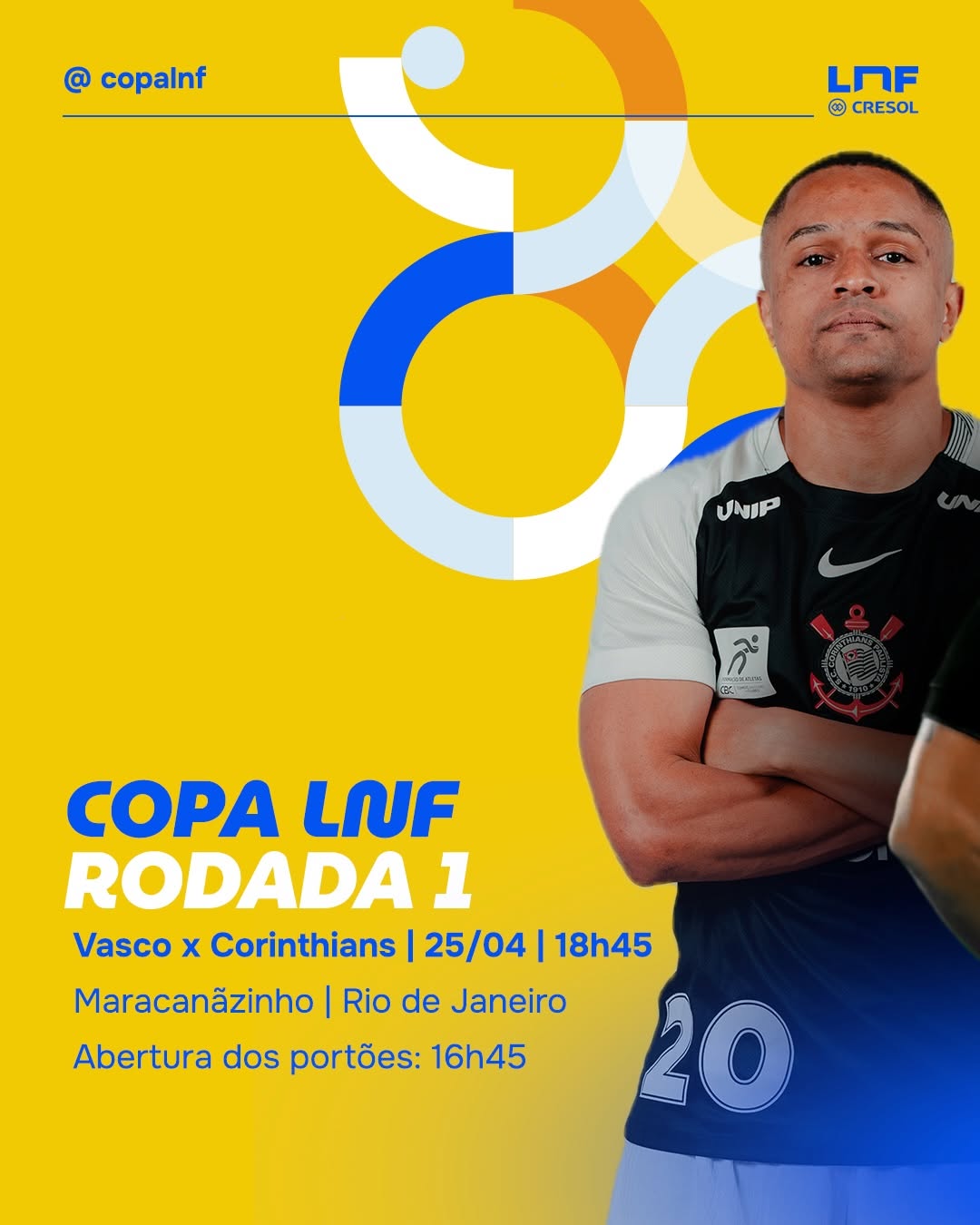 Futsal: Informações sobre ingressos para Vasco x Corinthians, no dia 25/04, no Maracanãzinho, pela Copa LNF