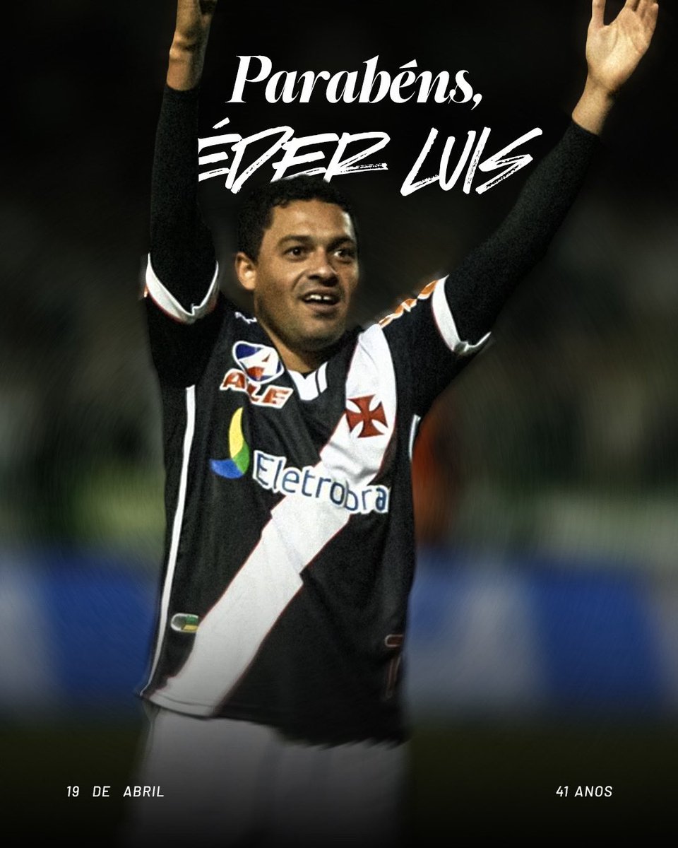 Vasco parabeniza Eder Luis, que completa 41 anos neste domingo