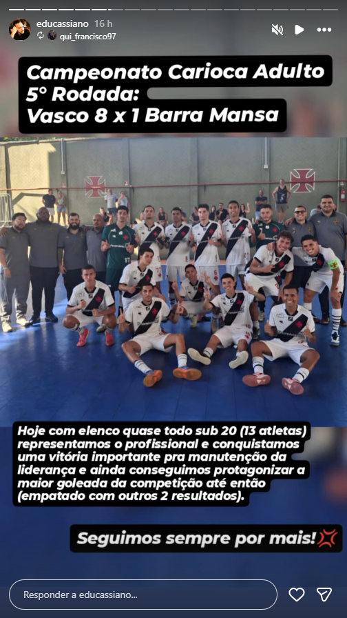 Futsal: Vasco vence a Liga Barramansense por 8 a 1 pelo Carioca