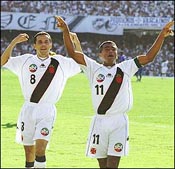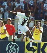comemora seu 1º gol pelo Vasco pulando como uma criança