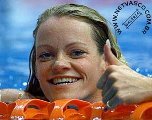 (23/09) Inge de Bruijn comemora a vitória nos 50m livre.
