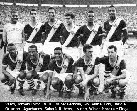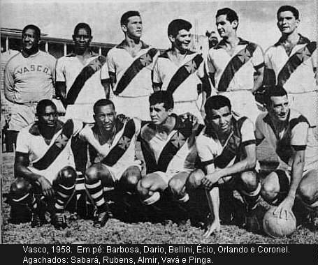 | 1958 | Barbosa (Miguel, Hélio), Paulinho (Dario, Bibi), Bellini (Viana), Orlando (Barbosinha) e Coronel (Ortunho); Écio (Laerte) e Rubens (Valdemar); Sabará (Lierte, Ramos), Almir (Livinho), Vavá, (Roberto Pinto, Delém, Wilson Moreira) e Pinga (Dominguinhos) . | Gradim (Francisco de Souza Ferreira) |