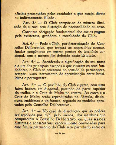 e portugueses; e o Artigo 6, que descreve a bandeira e o uniforme, ainda sem