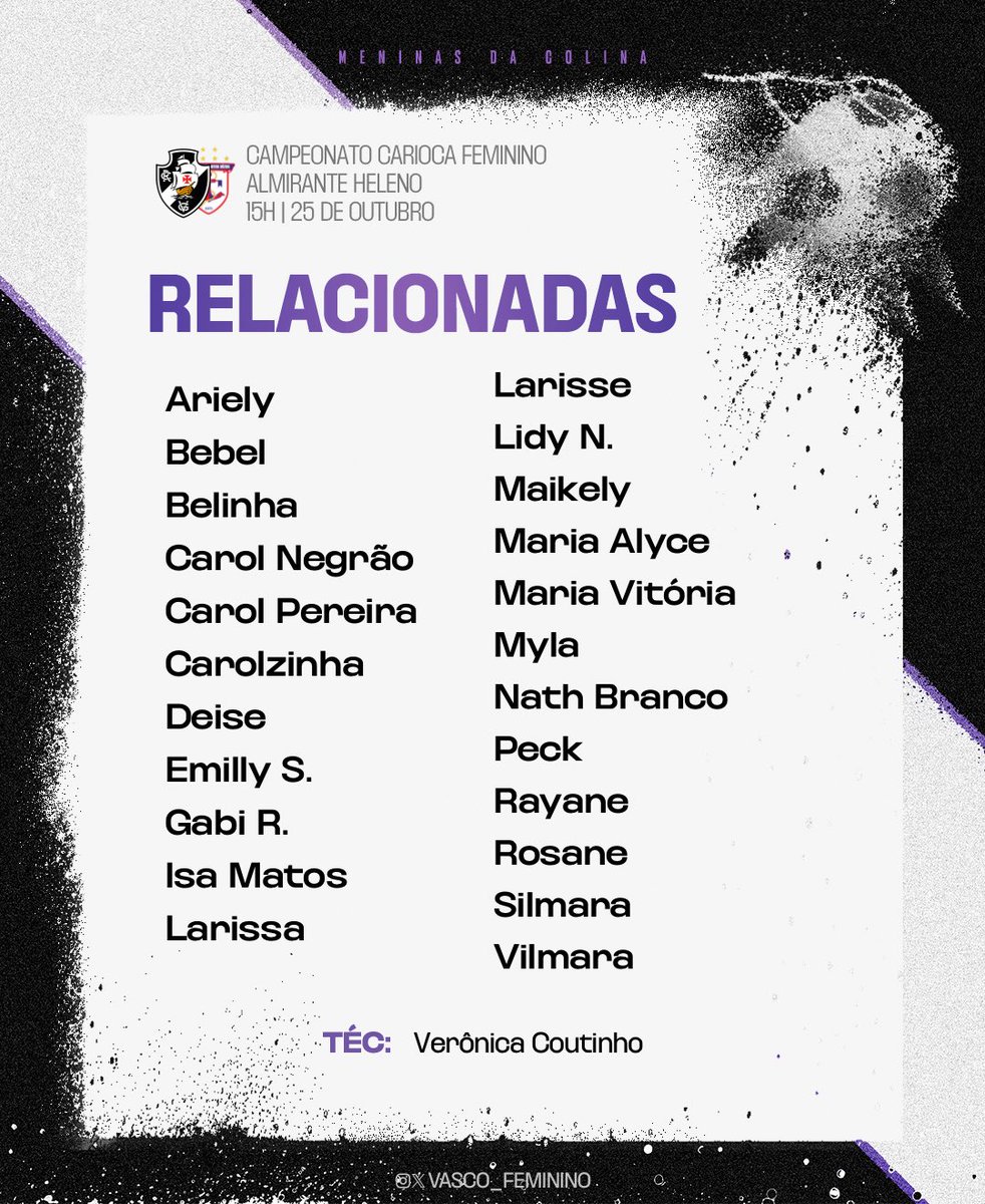 📄 Lista das #MeninasDaColina relacionadas para o duelo contra o Búzios, às 15h. 💢