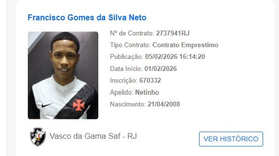 O garoto nascido em 2008 já teve passagem por Corinthians e Sport em 2023 e 2024 respectivamente. E agora chega pra reforçar o nosso elenco sub-20.