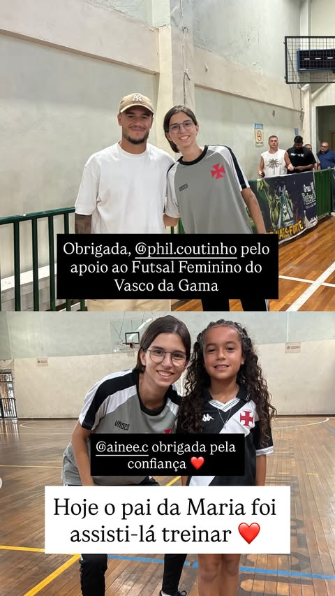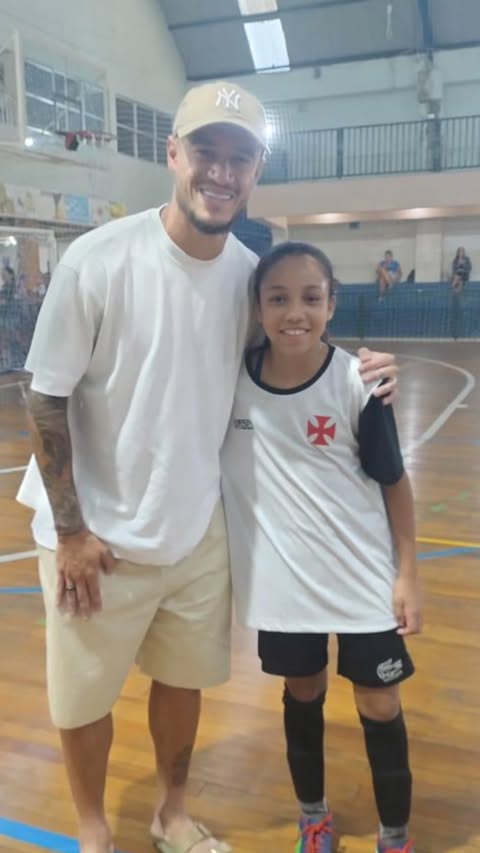 Philippe Coutinho vai ao treino de sua filha Maria, que joga no futsal de base do Vasco, e é tietado
