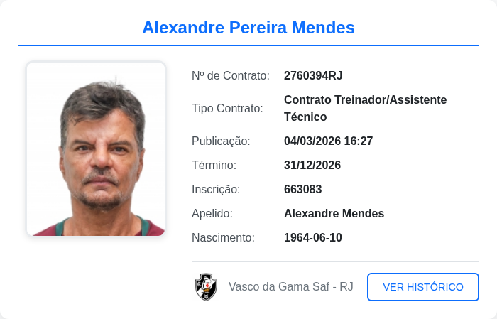 Tipo de contrato: Contrato Treinador/Assistente Técnico
