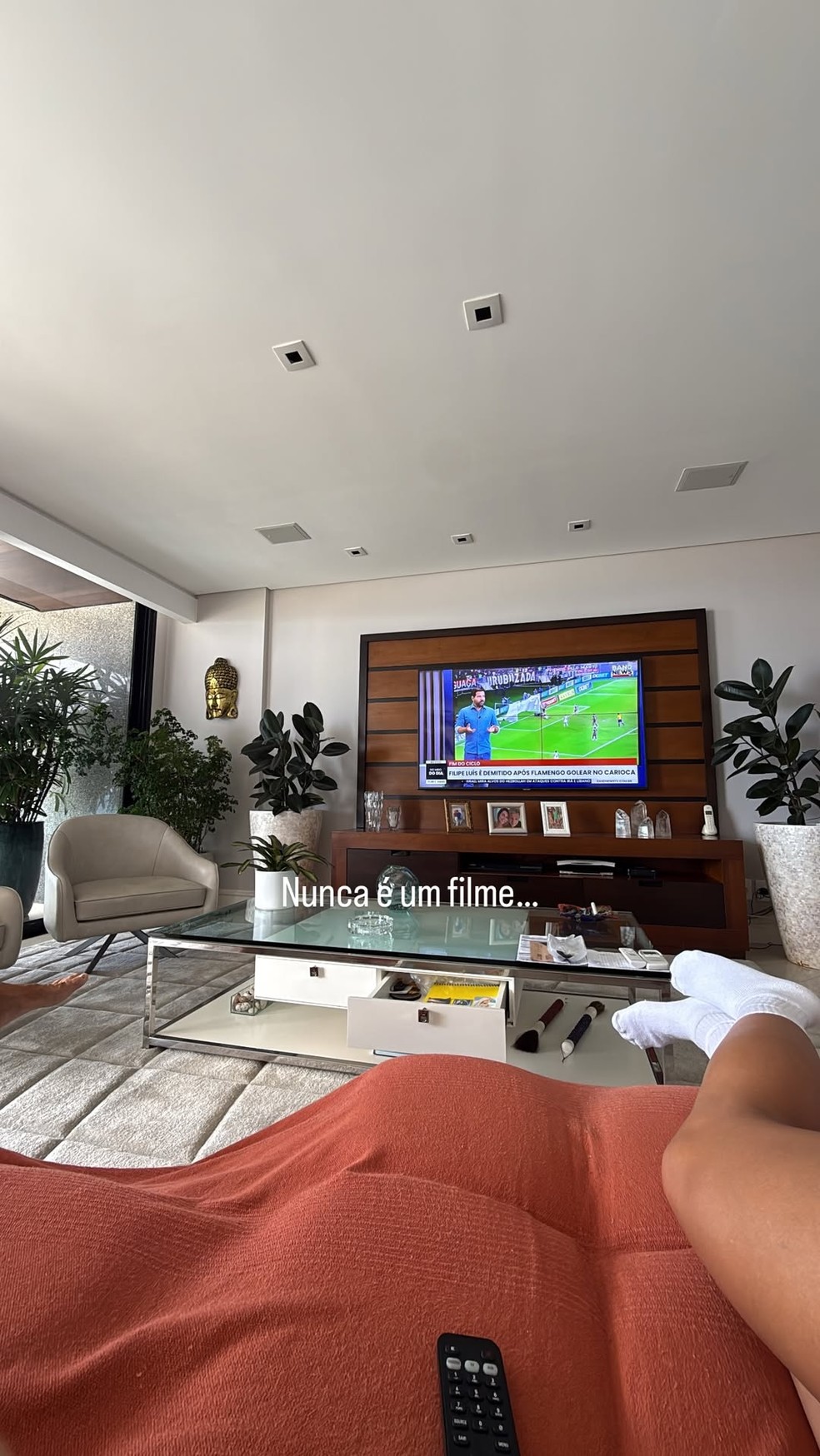 Mais cedo, antes do anúncio, brincou que em casa, "nunca é um filme" que colocam e sim, programas esportivos.