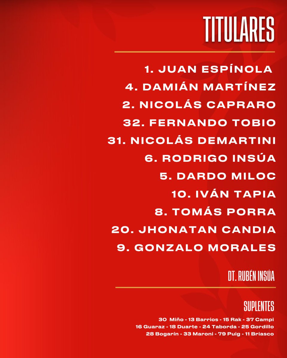👉 Rubén Darío Insúa definió el equipo titular del Guapo para nuestro debut internacional ante Vasco da Gama.