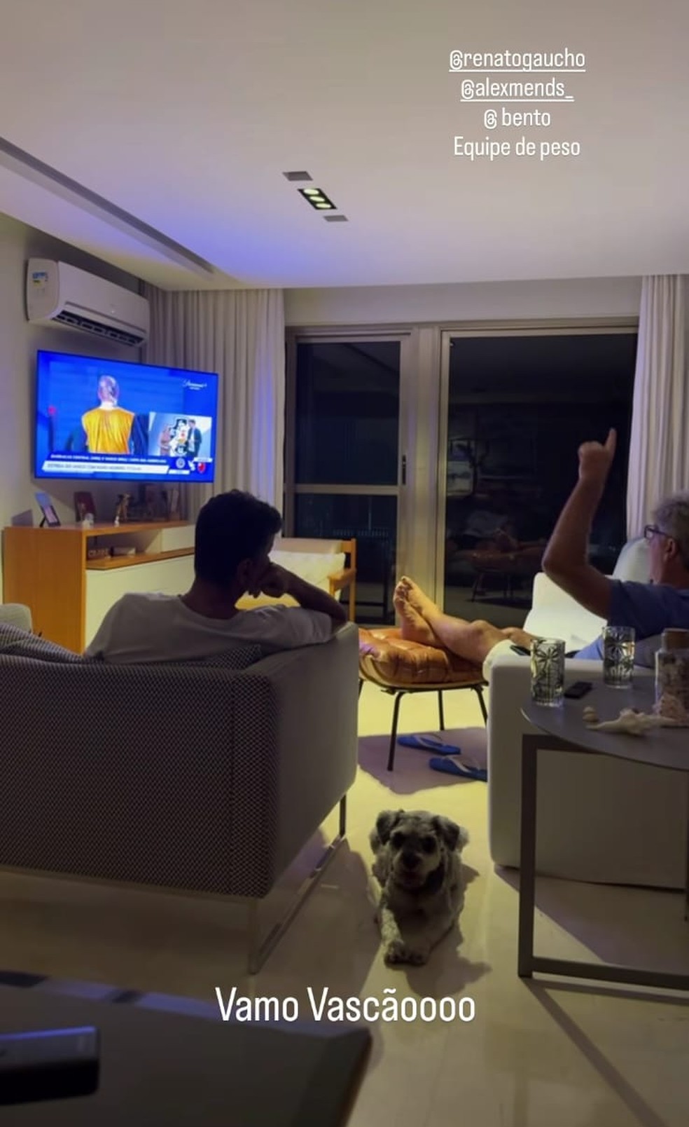 O técnico Renato Gaúcho, que não viajou à Argentina para comandar o Vasco na estreia na Copa Sul-Americana, acompanha a equipe pela TV. Em foto, a filha, Carol Portaluppi, mostrou o treinador assistindo à partida entre o cruz-maltino e o Barracas Central.