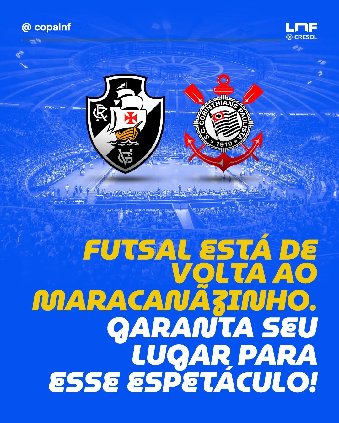Futsal: Informações sobre ingressos para Vasco x Corinthians, no dia 25/04, no Maracanãzinho, pela Copa LNF