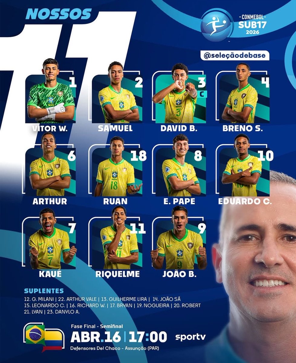 Brasil escalado para a SEMIFINAL do Sul-Americano sub-17: