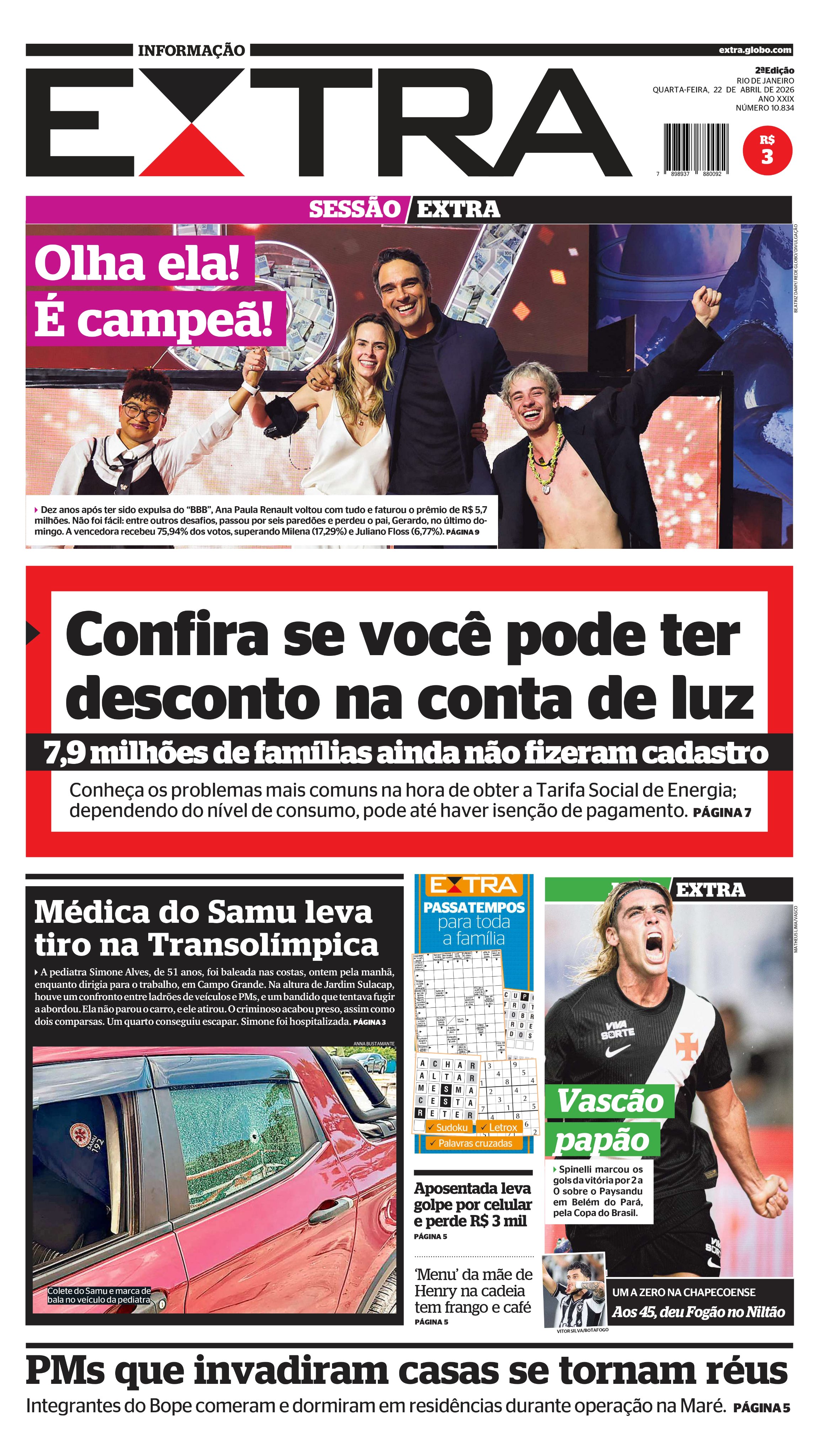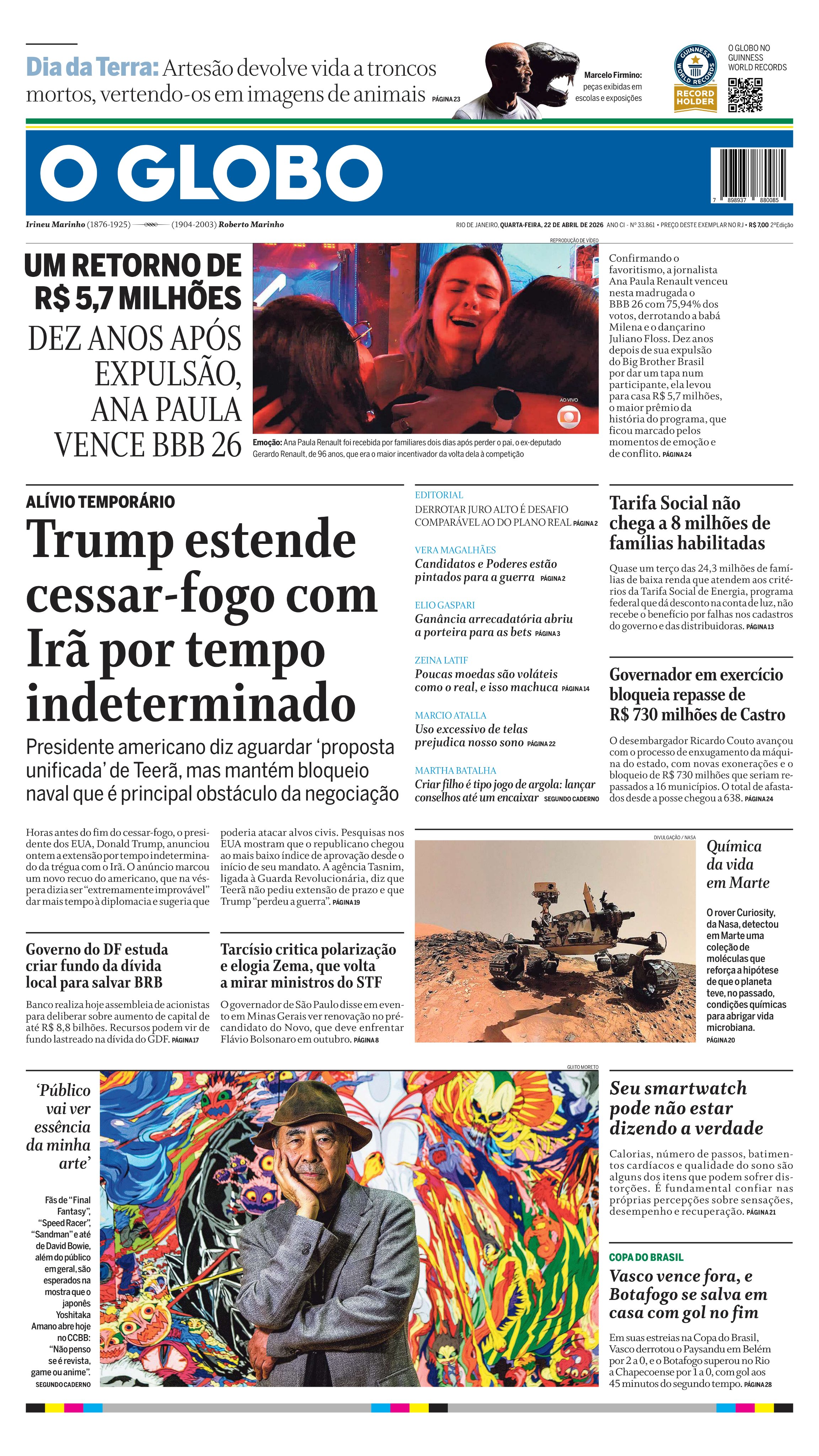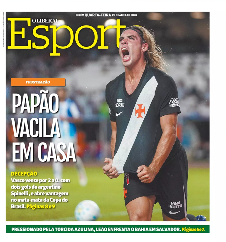 Em sua estreia na Copa do Brasil, já na 5ª fase da competição, o Vasco derrotou o Paysandu por 2 a 0 na noite desta terça-feira no Mangueirão, em Belém, com dois gols de Spinelli. Veja as capas dos jornais.