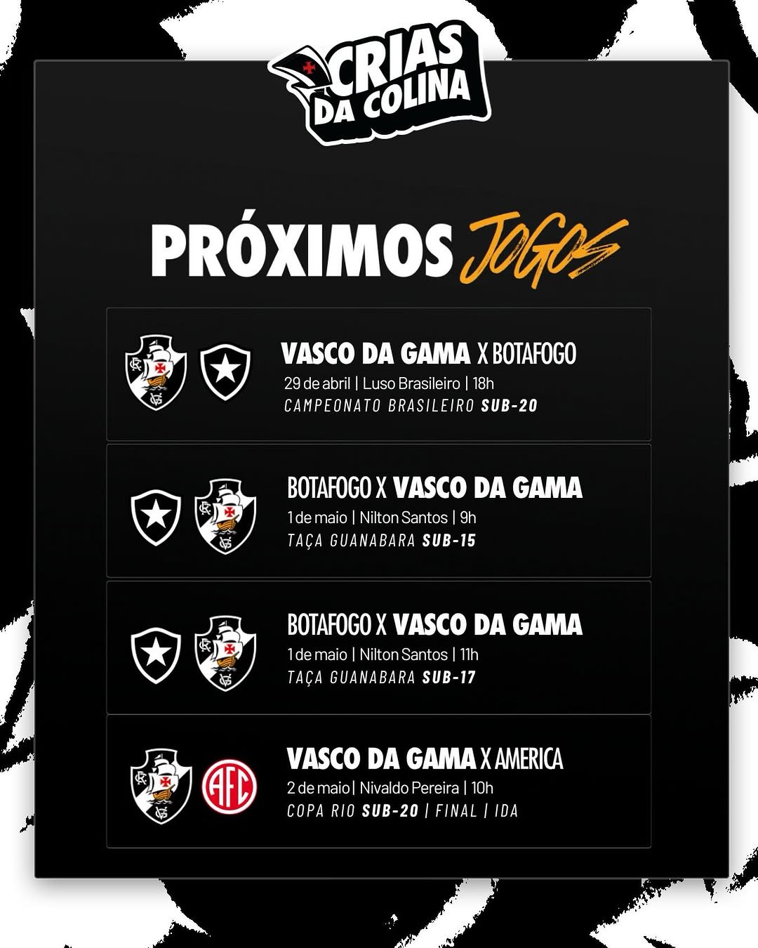 🗓️ Confira os próximos jogos dos #CriasDaColina!