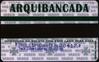 Data: 12.08.1998 (Quarta-feira) às 21h40. Competição: Taça Libertadores da América (Final - Jogo de Ida). Estádio: São Januário, no Rio de Janeiro (RJ). Árbitro: Gustavo Méndez (URU), auxiliado por Carlos Velazquez (URU) e Jorge Galatti (URU). Árbitro Reserva: Gustavo Gallesio (URU) Público: 36.273 pagantes. Renda: R$ 362.730,00. VASCO: 1-Carlos Germano; 31-Vágner (2-Vítor 21' do 2º), 3-Odvan, 4-Mauro Galvão e 6-Felipe; 5-Luizinho, 8-Nasa, 19-Juninho (18-Válber 37' do 2º) e 16-Pedrinho (11-Ramon 21' do 2º); 7-Donizete e 9-Luizão. Técnico: Antônio Lopes. Banco: 12-Márcio, 15-Alex, 21-Mauricinho e 22-Sorato. BARCELONA: Cevallos; Gómez (Rivera 35' do 1º), Montanero, Quiñónez e Capurro; Macías (George 10' do 2º), Aires, Rosero (Carabali, intervalo) e Morales; Asencio e De Ávila. Técnico: Ruben Insúa. Banco: Valencia, Noriega, Sotelo e Yanes. Gols: Donizete 7' do 1º - Vasco 1 a 0. Luizão 33' do 1º - Vasco 2 a 0. Cartões Amarelos: Odvan e 9-Luizão (Vasco); Morales e Cevallos (Barcelona). Cartões Vermelhos: - Observações: Maior público de São Januário na década de 90. BARCELONA 1 X 2 VASCO